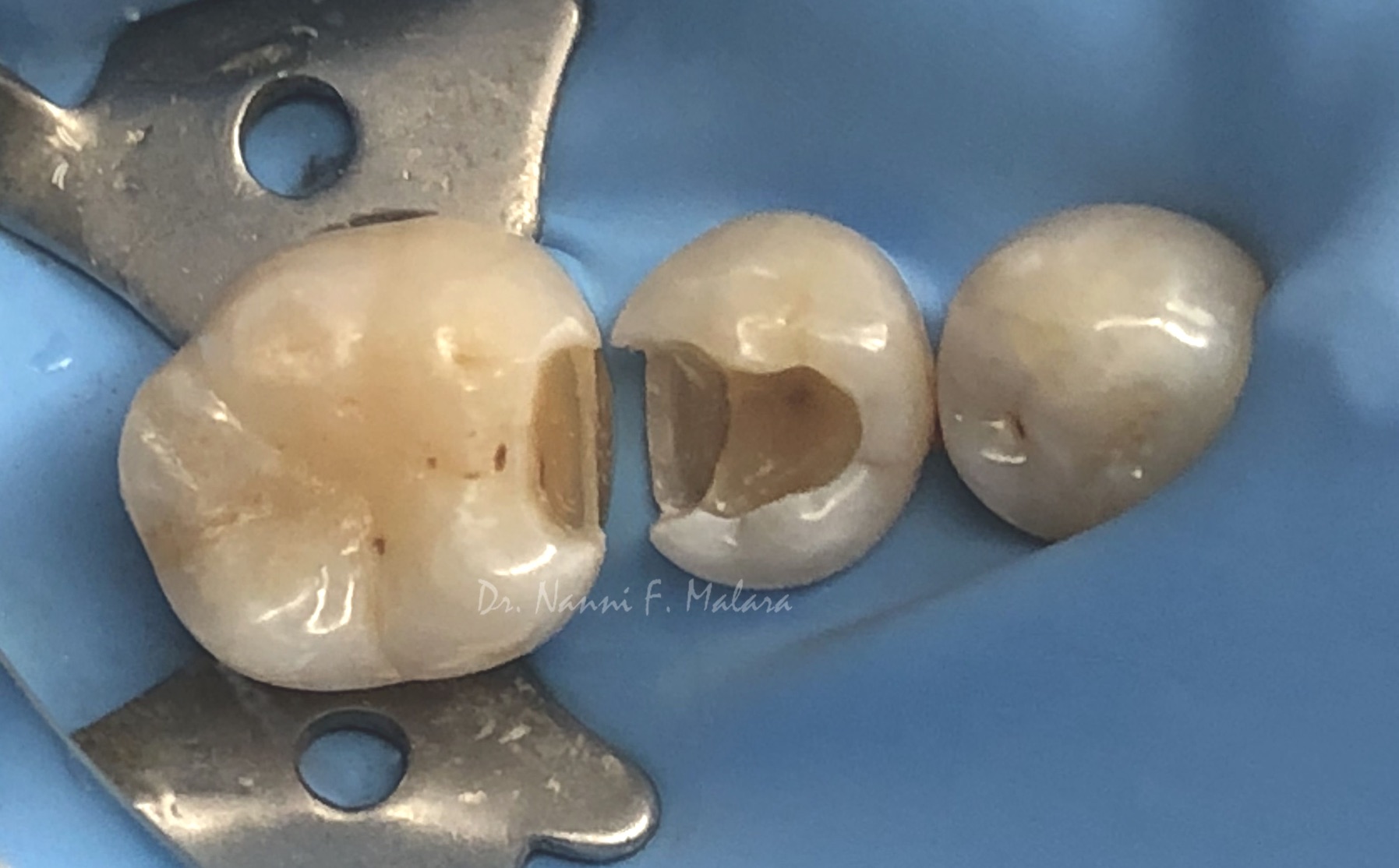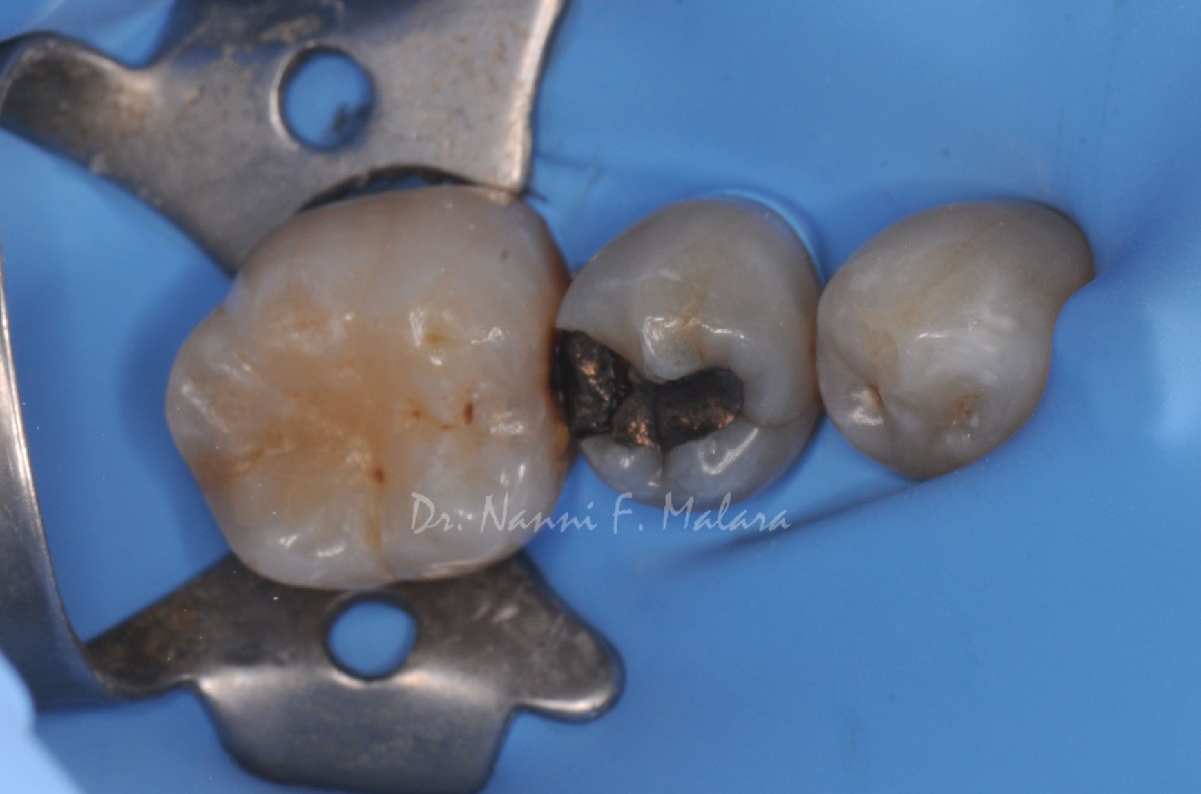 Ritrattamento di vecchia ricostruzione in amalgama occluso distale su secondo premolare e carie mesio occlusale su primo molare