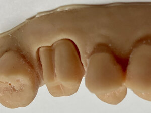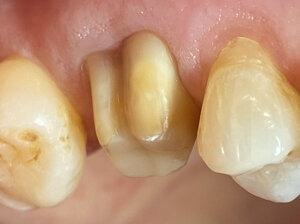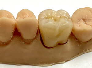 Premolare devitalizzato, ricostruito su perno e protetto con corona in ceramica