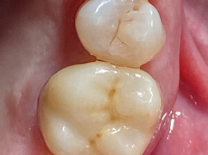 Incisivo centrale inferiore fratturato in seguito a trauma occlusale, incapsulato con corona in ceramica integrale