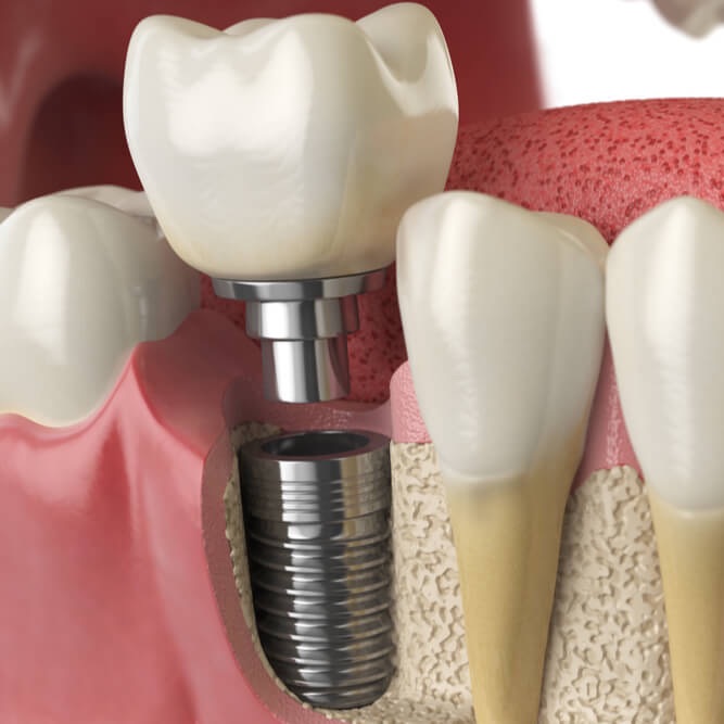 L'impianto in titanio, una volta inserito diventa parte integrante dell'osso dopo un processo di osteointegrazione della durata di circa 4-5 mesi al termine dei quali si finalizza con la fase protesica mediante inserimento della corona sull'impianto (che potrà essere cementata o avvitata).