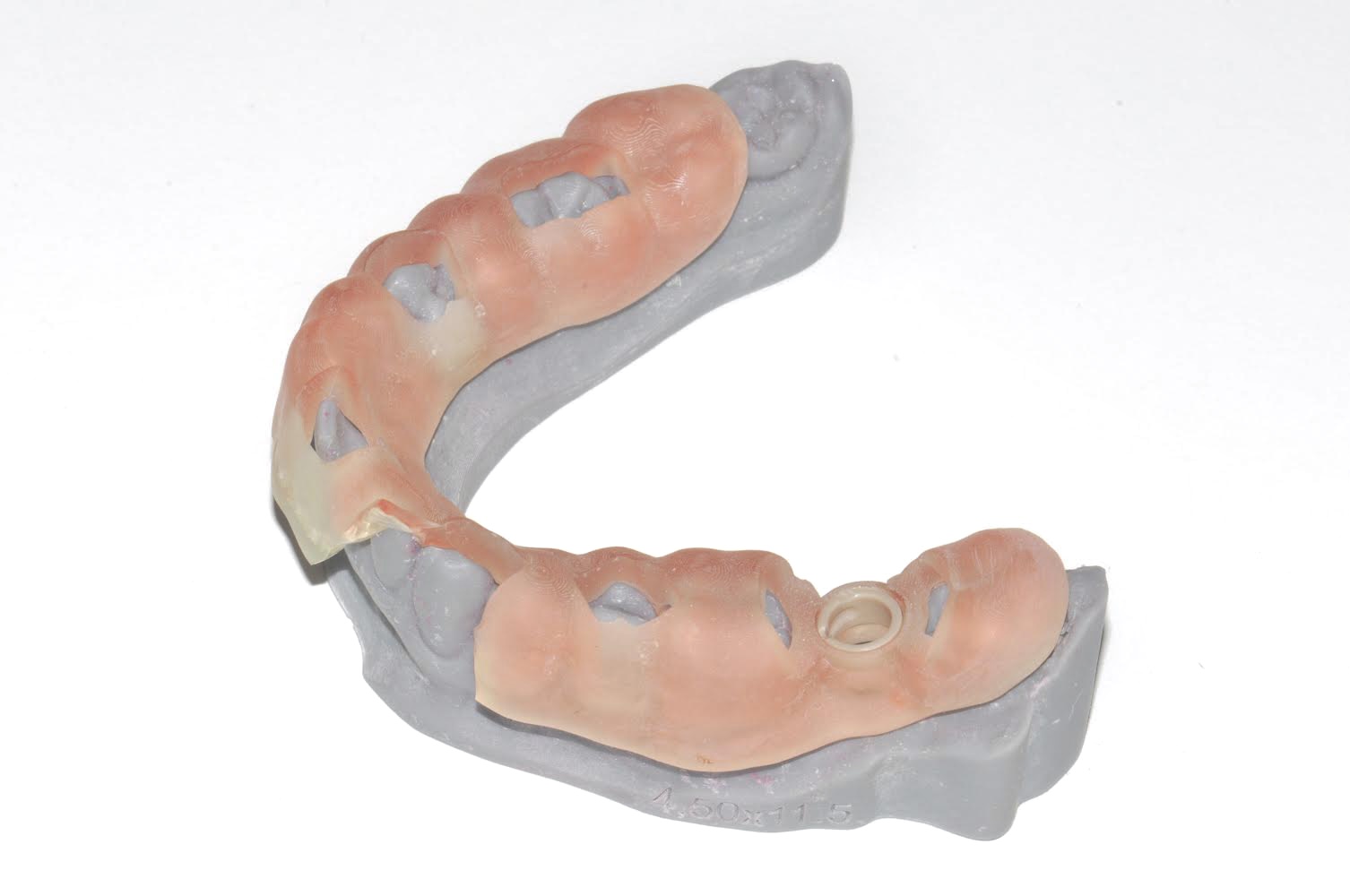In base alla programmazione computerizzata, in laboratorio viene realizzata una mascherina in resina tramite stampante 3D, che guiderà il posizionamento degli impianti